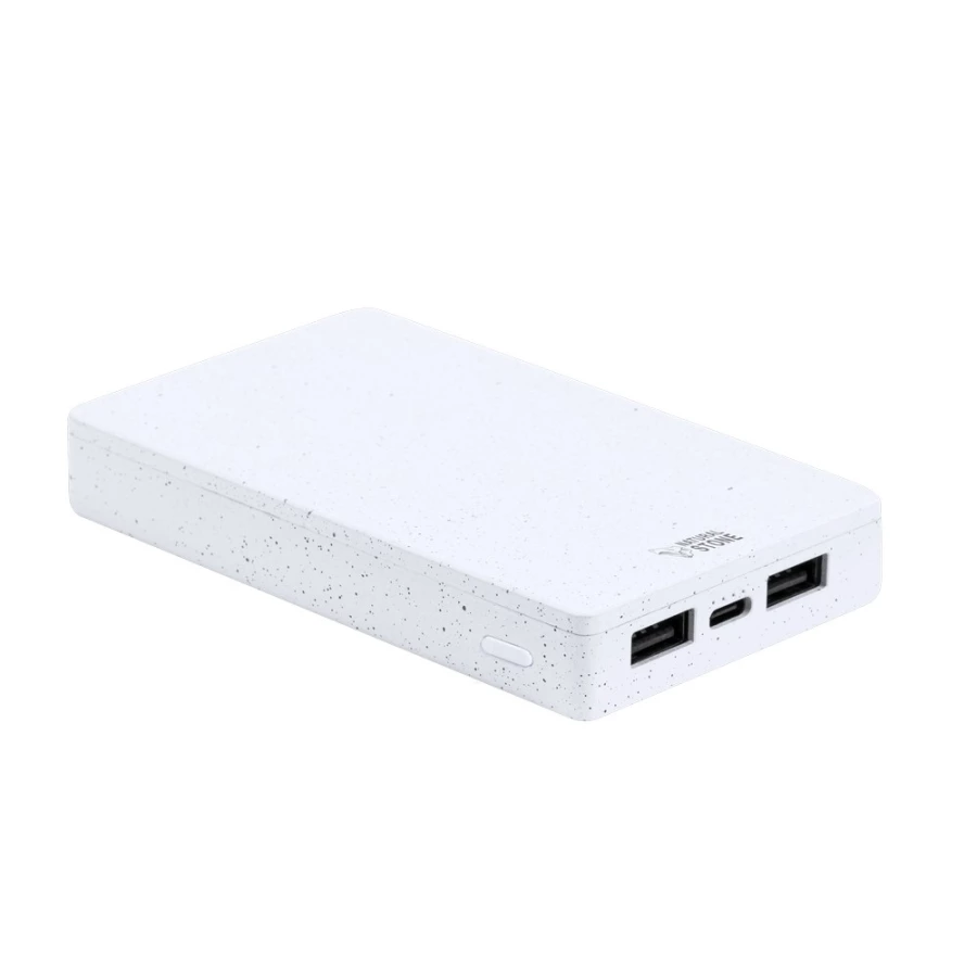 Power bank 5000 mAh wykonany z ekstraktu z kamienia, 4 diody wskazujące poziom naładowania, możliwość ładowania trzech urządzeń jednocześnie, 2 wyjścia USB 5V/2.4A, wejście/wyjście USB-C 5V/2.4A, kabel USB-C w komplecie