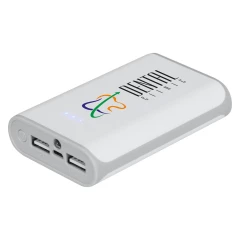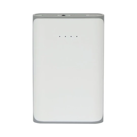 Power bank 6000 mAh, wyjścia 5V/2.1A oraz 5V/1A, wejście 5V/1A, 4 diody wskazujące poziom naładowania, lampka LED, w komplecie kabel micro USB