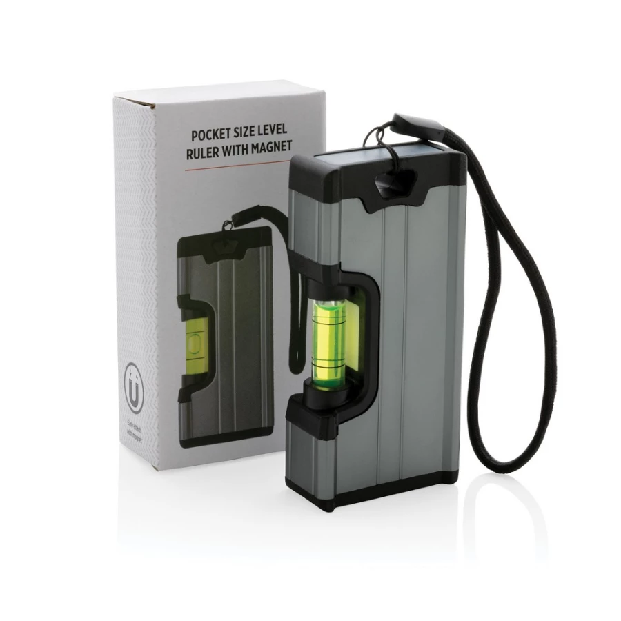 Poziomica 10 cm, kieszonkowy rozmiar, magnetyczna podstawa, gumowe zaślepki, dokładność do 0,5 mm, ślad węglowy produktu: 2,63 kg CO2
