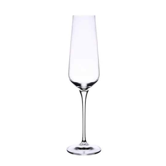 Subtelny kieliszek przeznaczony do szampana. Wykonany z cienkiego najwyższej jakości europejskiego szkła sprawi, że każdy łyk musującego trunku będzie wyjątkowym doznaniem. Posiada ciekawe możliwości barwienia oraz zdobień.