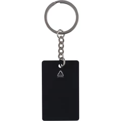Prostokątny brelok do kluczy, ikona recyklingu na produkcie, produkt wykonany ze stali nierdzewnej z recyklingu