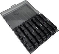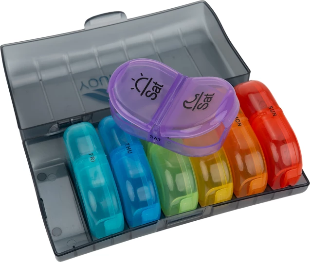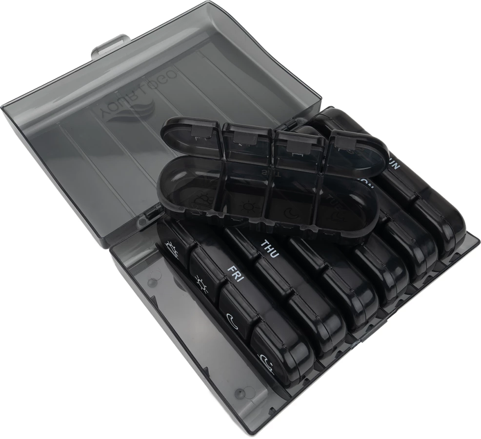 Funkcjonalny i wytrzymały organizer do leków (pillbox), przeznaczony do planowania i przechowywania dawek leków, suplementów diety lub witamin. Dostępny w różnych wariantach kolorystycznych, wielkościach oraz konfiguracjach przegródek – w zależności od potrzeb użytkownika. Produkt wykonany z wysokiej jakości tworzywa łatwego w czyszczeniu. Idealny do użytku domowego lub w podróży, szczególnie przy stałym leczeniu wymagającym regularnego dawkowania leków.