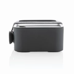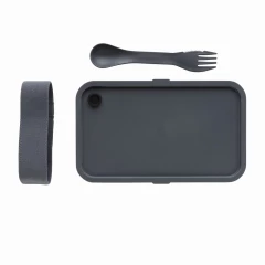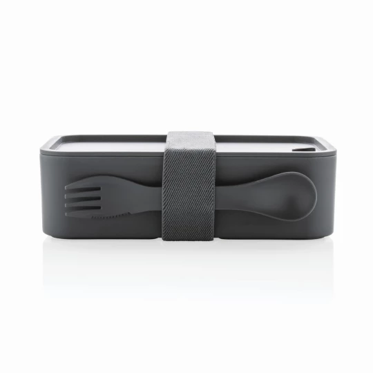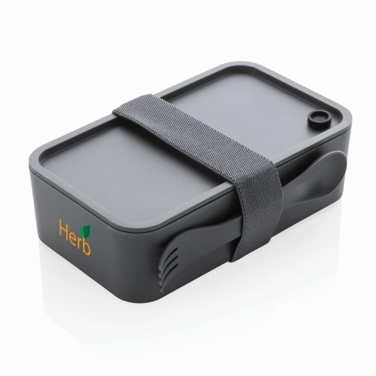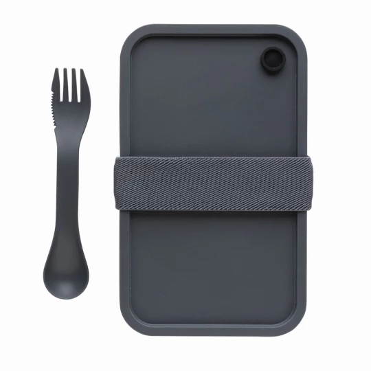 Pudełko śniadaniowe 1,2 L, lunchbox, wykonany w 93% z PP pochodzącego z recyklingu z certyfikatem GRS (Global Recycled Standard) który gwarantuje, że wykorzystane materiały pochodzą z recyklingu, w komplecie łyżkowidelec i elastyczny pasek, nie należy myć w zmywarce i używać w kuchence mikrofalowej