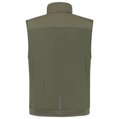 poliester pochodzący z recyklingu, wiatroodporny i wodoodporny materiał, nowoczesny miękki wygląd, odblaskowy nadruk wzdłuż wejścia do kieszeni i na środkowej części pleców, prosty krój ze szwami bocznymi, zamek błyskawiczny na całej długości z ochroną podbródka i klapą sztormową zamykaną na kryte zatrzaski, kołnierzyk stojący, rękawy z elastycznym paskiem po bokach, lewa strona klatki piersiowej jest wykonana z materiału softshell, gotowego do ewentualnego wykonania nadruku, zapinana na zamek kieszeń na piersi, z wewnętrzną szlufką na identyfikator, kieszenie zapinane na suwak, kieszenie zapinane na zamek YKK, dostęp dla brandingu, dolna lamówka wykonana ze ściągaczem, Tricorp kod produktu: 402710