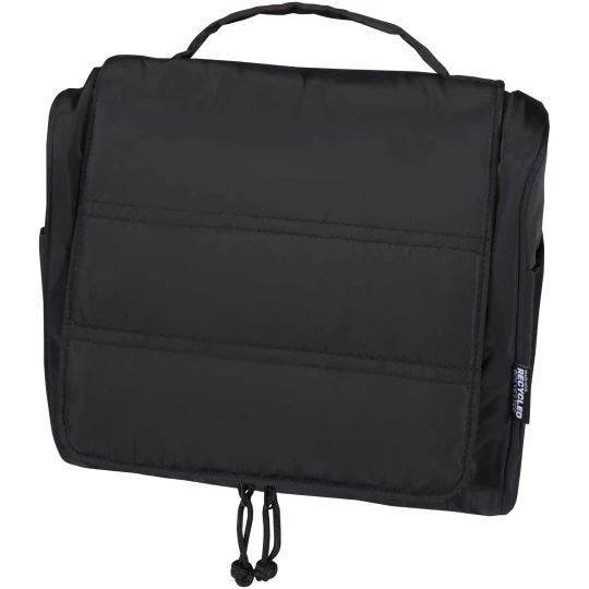 Zawieszana kosmetyczka Puffer została wykonana z materiałów pochodzących z recyklingu z certyfikatem GRS, i wyróżnia się wyjątkowym designem, co zapewnia wygodę użytkowania na co dzień. Ta 8-litrowa kosmetyczka posiada pojemną komorę główną z sześcioma wewnętrznymi kieszeniami, dwie zewnętrzne kieszenie boczne i poręczny haczyk do zawieszenia na drzwiach lub wieszakach na ręczniki. Wyściełany uchwyt ułatwia przenoszenie, a charakterystyczna puchowa wyściółka podkreśla styl i zapewnia ochronę. To lekka i wodoodporna torba, dzięki której Twoje najważniejsze rzeczy będą uporządkowane i bezpieczne, dokądkolwiek podróżujesz.