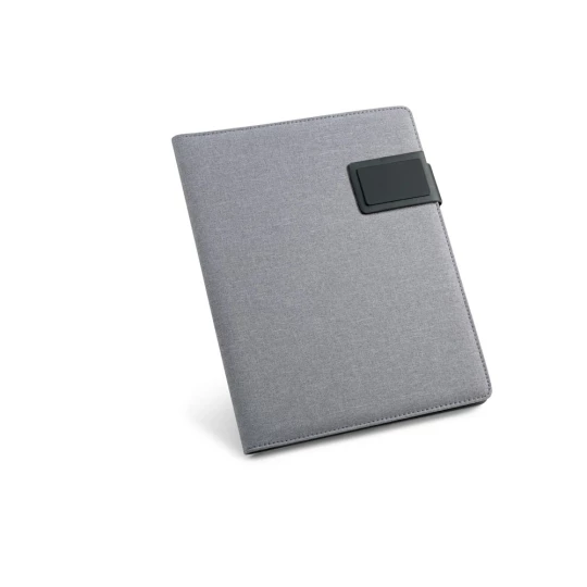 Teczka A5 wykonana z imitacji lnu i i PU. Posiada magnetyczne zamknięcie z płytką z możliwością personalizacji. Teczka zawiera blok z 40 liniowanymi stronami (60 g/m²), podstawkę na długopis i inne przegródki na akcesoria. Długopis i akcesoria nie są dołączone do zestawu. 183 x 252 x 18 mm | Metalowa płytka: 50 x 30 mm