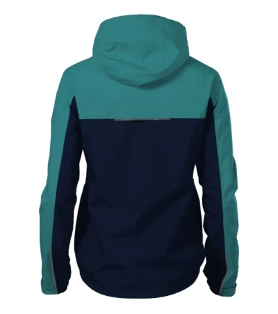 lekka wodoodporna tkanina z membraną, wykończenie BIONIC FINISH® ECO zapobiegające przenikaniu wody, krój taliowany za pomocą bocznych części, wodoodporny zamek zakończony ochroną podbródka, odpinany kaptur ściągany sznurkiem, regulowane obszycia rękawów za pomocą rzepu, boczne kieszenie z zamkiem błyskawicznym z odwróconą cewką, wewnętrzna kieszeń na piersi zapinana na rzep, klejone szwy, dostęp do brandingu z boku, lekko przedłużona w tylnej części, dolna lamówka koszulki z gumką, wentylacja w tylnej części, elementy odblaskowe