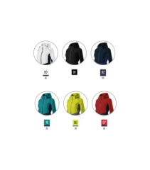 lekka wodoodporna tkanina z membraną, wykończenie BIONIC FINISH® ECO zapobiegające przenikaniu wody, krój taliowany za pomocą bocznych części, wodoodporny zamek zakończony ochroną podbródka, odpinany kaptur ściągany sznurkiem, regulowane obszycia rękawów za pomocą rzepu, boczne kieszenie z zamkiem błyskawicznym z odwróconą cewką, wewnętrzna kieszeń na piersi zapinana na rzep, klejone szwy, dostęp do brandingu z boku, lekko przedłużona w tylnej części, dolna lamówka koszulki z gumką, wentylacja w tylnej części, elementy odblaskowe