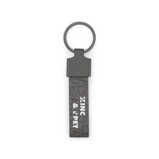 Prostokątny brelok do kluczy wykonany z metalu i PET (30% z recyklingu). Posiada pierścień ułatwiający umieszczanie kluczy i małych przedmiotów. Dostarczany w woreczku z papieru kraftowego. Pierścień: ø 32 mm | Produkt: 87 x 25 x 7 mm | Razem: 115 x 32 x 7 mm | Torba: 135 x 55 mm
