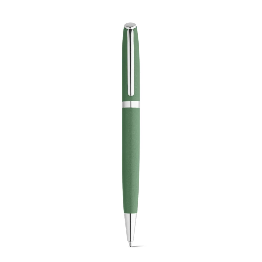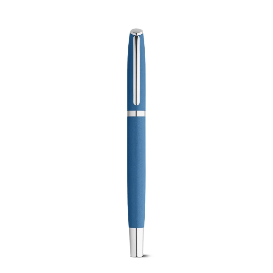 Zestaw długopisów i piór kulkowych z korpusem wykonanym z aluminium pochodzącego z recyklingu (100% rAL), metalowym klipsem i końcówkami. Zestawy są w tym samym kolorze, a długopis ma mechanizm obrotowy. Niebieski tusz. Dostarczany w pudełku z papieru z 100% recyklingu. Rolka: ø11 x 140 mm | Długopis: ø11 x 140 mm | Pudełko: 178 x 46 x 29 mm