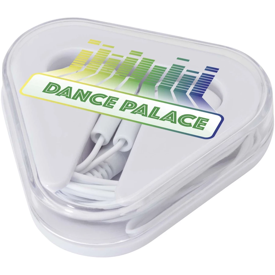 Słuchawki douszne Rebel to proste słuchawki douszne, których można używać z dowolnym standardowym urządzeniem audio z gniazdem audio 3,5 mm. Słuchawki douszne są umieszczone w trójkątnym etui z miejscem na kabel, wykonanym z plastiku pochodzącego z recyklingu, które dobrze chroni je przed uszkodzeniami zewnętrznymi.