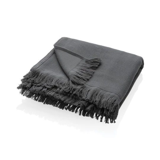 Ręcznik plażowy, lekki, miękki i chłonny, wykonany w 50% z bawełny pochodzącej z recyklingu, posiada wbudowany znacznik AWARE™, który potwierdza obecność materiałów z recyklingu, wyprodukowany w Europie, 2% wpływów z każdego sprzedanego produktu z kolekcji Impact jest przekazywane na rzecz Water.org, ślad węglowy produktu: 3,87 kg CO2