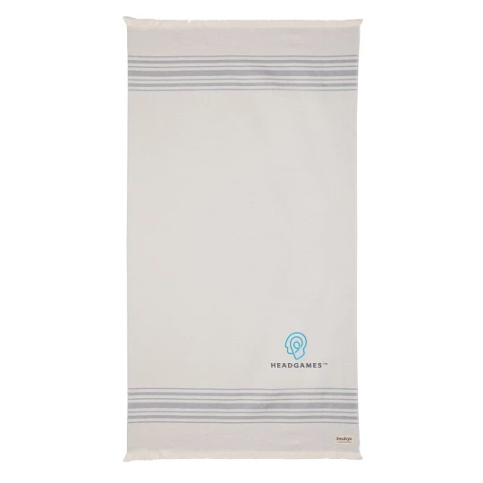 Ręcznik, lekki, wysoce chłonny, odporny na piasek i szybkoschnący, można go wykorzystać również jako koc czy obrus, wykonany z mieszanki 88% bawełny z certyfikatem OEKO-TEX (w procesie produkcji nie są wykorzystane żadne szkodliwe substancje lub barwniki) oraz w 12% z bawełny z recyklingu, dzięki zastosowaniu technologii śledzącej AWARE™ wykorzystane włókna są identyfikowalne z pochodzenia, 2% wpływów z każdego sprzedanego produktu jest przekazywane na rzecz Water.org, można prać w pralce, wymiar 100 x 180 cm (wyprodukowany w Europie / made in Europe)