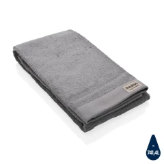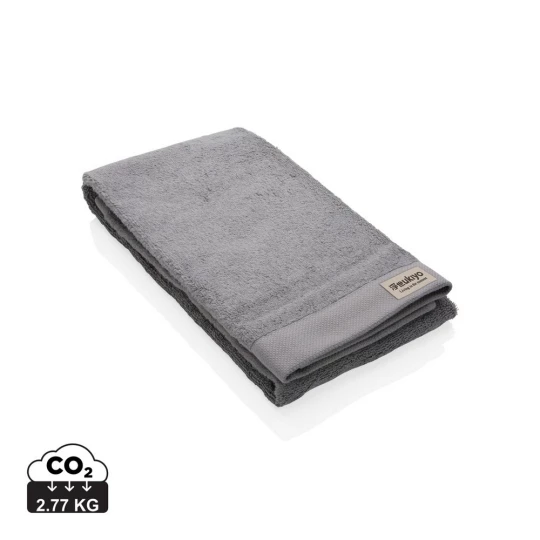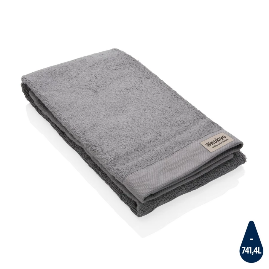 Ręcznik, miękki i gruby, wykonany z mieszanki 70% bawełny z certyfikatem OEKO-TEX (w procesie produkcji nie są wykorzystane żadne szkodliwe substancje lub barwniki) oraz w 30% z bawełny z recyklingu, dzięki zastosowaniu technologii śledzącej AWARE™ wykorzystane włókna są identyfikowalne z pochodzenia, 2% wpływów z każdego sprzedanego produktu jest przekazywane na rzecz Water.org, można prać w pralce (wyprodukowany w Europie / made in Europe)