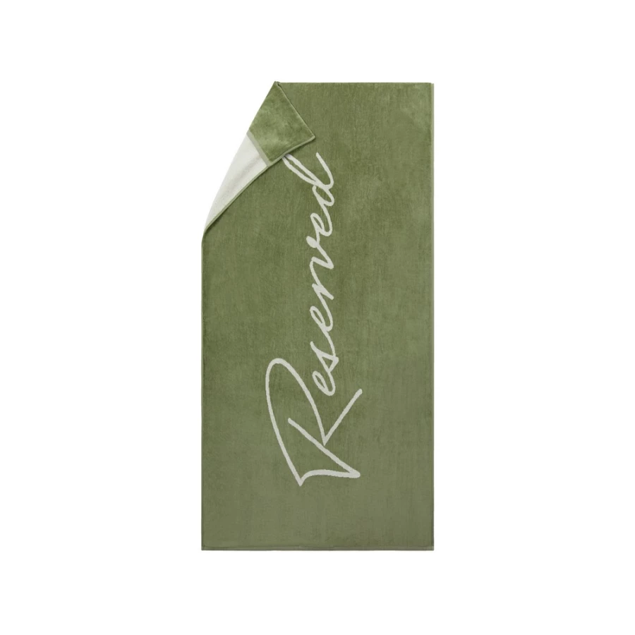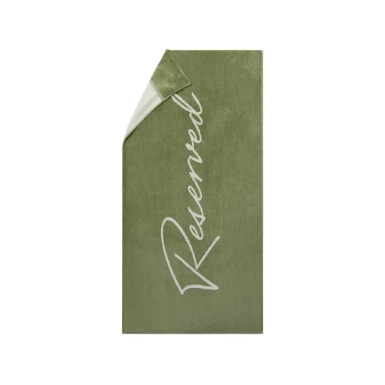Ręcznik plażowy, kieszeń do zamocowania na leżaku na krótszym boku, wykonany w 100% z bawełny o gramaturze 450 g/m2 z certyfikatem GOTS
