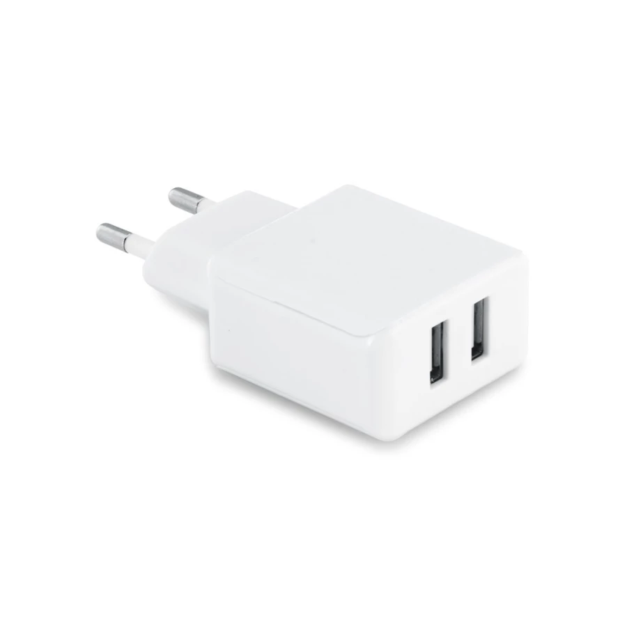 Adapter USB. ABS. Posiada 2 wyjścia 5V/1-2'1A. 62 x 42 x 23 mm