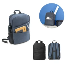 Plecak na laptopa i tablet, idealny do ochrony i transportu urządzeń.Materiał zewnętrzny: poliester z recyklingu o wysokiej gęstości 600DMateriał wewnętrzny: poliester z recyklingu 210DKieszeń na komputer/tablet: 15.6 cala/10.5 calaPojemność (l): 12Komory: 1 komora głównaKieszenie zewnętrzne: 2 przednie kieszenie zapinane na zamek błyskawiczny i 1 boczna kieszeń z siatkiPanel tylny: wyściełany z dodatkowym systemem podparcia i uchwytem do wózkaWymiary: 300 x 420 x 110 mm