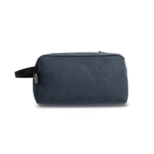 Kosmetyczka z poliestru 600D pochodzącego z recyklingu z wyściełanym wnętrzem. Przednia kieszeń zasuwana na zamek. Z boku wszyty został uchwyt z taśmy. 220 x 120 x 110 mm