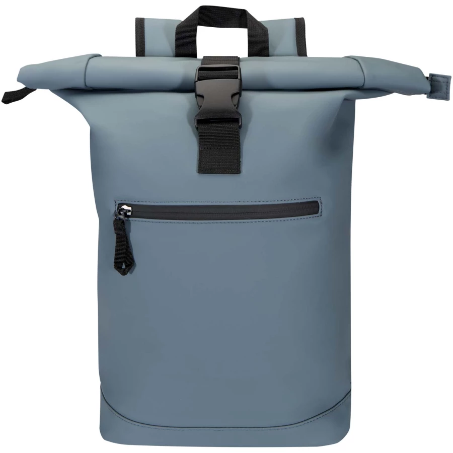 Wykonany z najwyższej jakości przetworzonej skóry PU z podszewką z tworzywa RPET w pasującym kolorze, ten plecak z rolowaną górą łączy nowoczesny styl z długotrwałą wytrzymałością. Wodoodporne wykończenie chroni Twoje najważniejsze rzeczy, a rolowane zamknięcie pozwala na swobodne przechowywanie, co doskonale sprawdzi się w drodze do pracy, w podróży lub na siłowni. Wewnątrz znajduje się wyściełana przegroda, która oddziela laptopa o przekątnej ekranu do 15,6 cala, a dodatkowa kieszeń zapinana na zamek pozwala na utrzymanie porządku w urządzeniach elektronicznych i przedmiotach użytku codziennego. Na zewnątrz znajduje się przednia kieszeń zapinana na suwak z wodoodpornym zamkiem. Umożliwia to bezpieczny dostęp, a wyściełane, regulowane paski na ramiona i oddychająca tylna ścianka gwarantują całodzienny komfort.