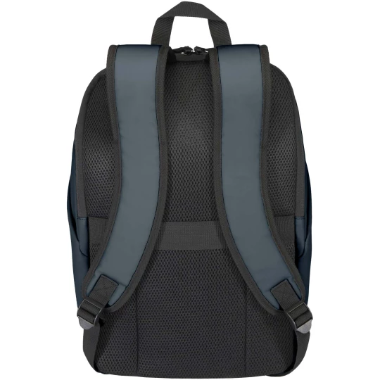 Plecak na laptop 15-calowy wykonany z najwyższej jakości skóry poliuretanowej (PU) z certyfikatem GRS pochodzącej z recyklingu, z podszewką z tworzywa RPET w dopasowanym kolorze, z zabezpieczeniem antykradzieżowym zapewniający ochronę i suchość Twoich rzeczy w podróży. Ma tylną przegrodę na laptopa, dwie opływowe kieszenie boczne i przednią kieszeń zapinaną na suwak z wodoodpornym zamkiem. Oddychający tylny panel gwarantuje całodzienny komfort, dzięki czemu plecak idealnie nadaje się do dojazdów do pracy, podróży i miejskich przygód. Pojemność: 18 litrów.