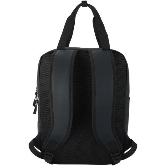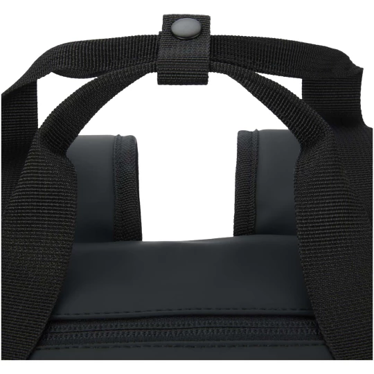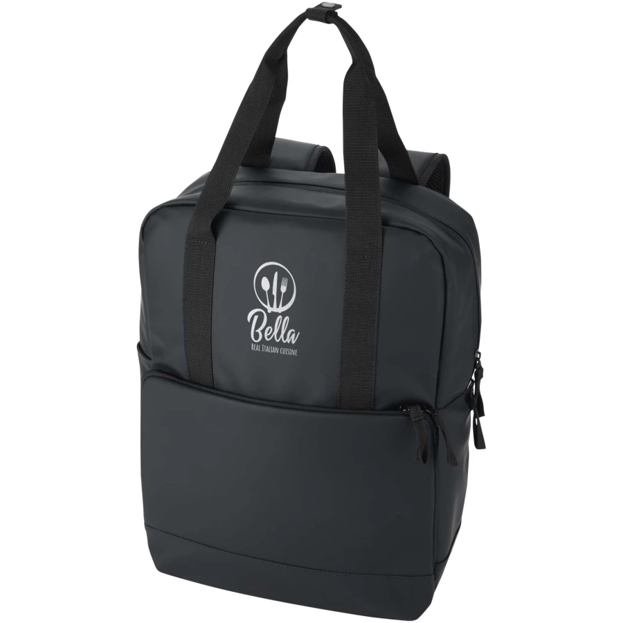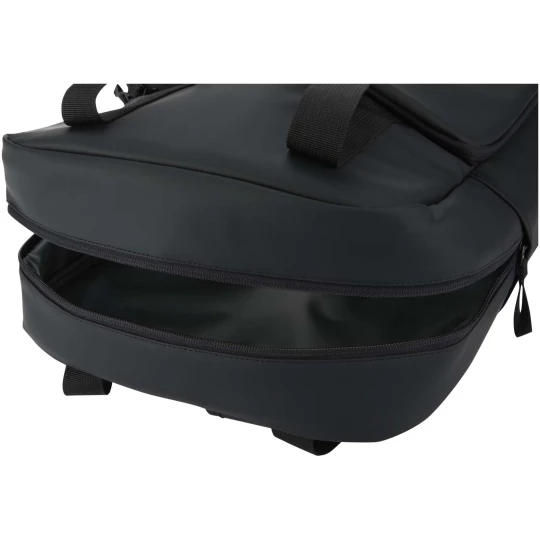 18-litrowy plecak-lodówka wykonany z pochodzącej z recyklingu skóry poliuretanowej (PU) z certyfikatem GRS, z dopasowaną podszewką z tworzywa RPET stworzono z myślą o przygodach na świeżym powietrzu. Przestronna komora główna jest izolowana wysokiej jakości podszewką z tworzywa PEVA i grubą pianką z tworzywa PE, co pozwala na utrzymanie niskiej temperatury jedzenia i napojów. Elastyczne pętle z taśmy bezpiecznie utrzymają w niej butelkę wina. Duża, wyściełana przednia kieszeń zapinana na suwak zapewnia dodatkową ochronę, a otwarta kieszeń boczna umożliwia szybki dostęp do butelki z napojem. Aby zapewnić wygodę, torba ta wyposażona jest w przewiewną siateczkę z tyłu oraz regulowane i wyściełane paski na ramię. Doskonale nadaje się na pikniki, wycieczki na plażę i kemping.