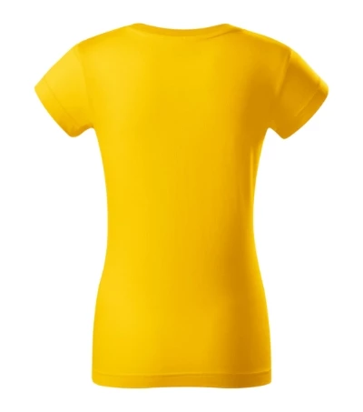 niekurczliwa bawełna odporna na wyższe temperatury, temperatura prania do 95 °C (biały) oraz 60 °C (kolor), dopasowany krój ze szwami bocznymi, lamówka dekoltu wykonana z dzianiny ściągaczowej 1:1, szew wzmacniający na ramionach, bardzo krótkie rękawy, Produkt dostępny w dwóch wersjach: z metką firmową w szwie bocznym lub bez (patrz zestawienie kolorów). Opcja z metką tylko do wyczerpania zapasów.