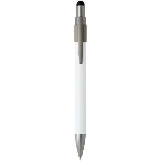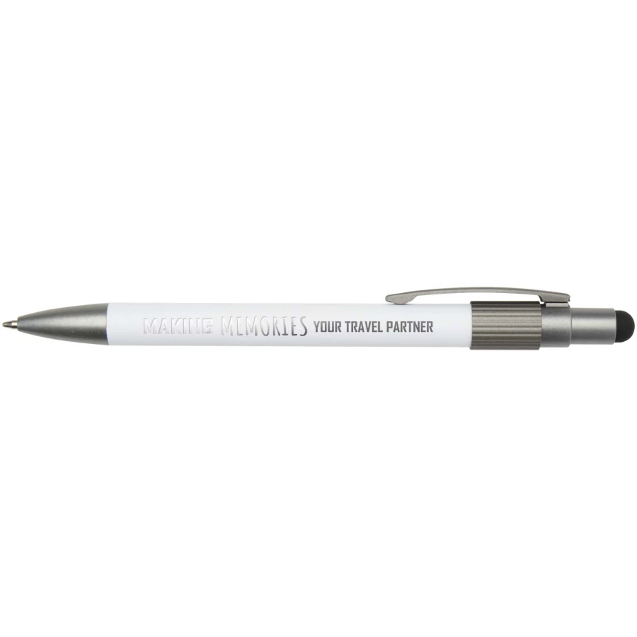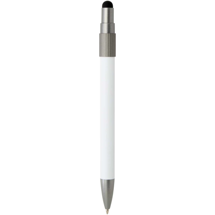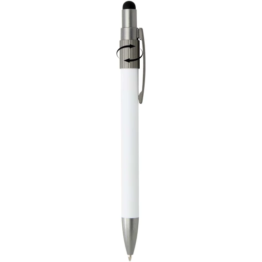 Długopis z rysikiem i fidget spinnerem, łączący praktyczność z zabawnym wyglądem. Długopis jest wykonany z certyfikowanego przez RCS aluminium pochodzącego z recyklingu i wyposażony w płynnie działający mechanizm przycisku oraz końcówkę rysika do obsługi ekranów dotykowych. Wbudowany w górną część długopisu fidget spinner pomaga w łagodzeniu stresu (wystarczy go poruszyć). Kolor tuszu długopisu: czarny Żywotność: 1000 metrów.