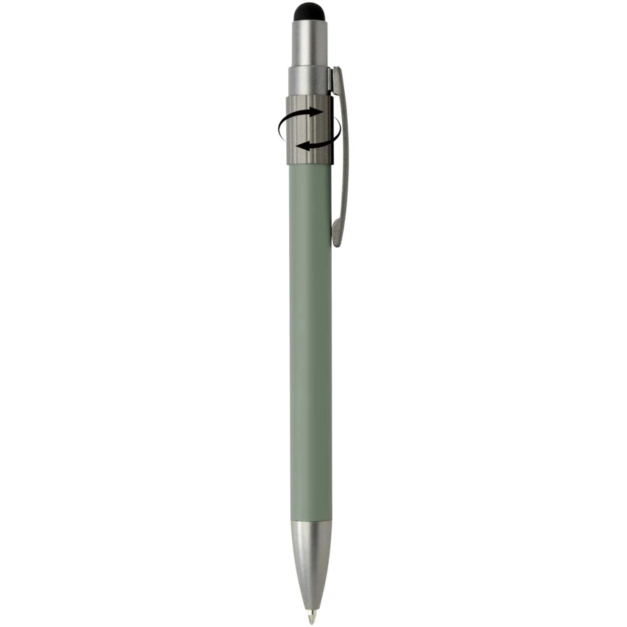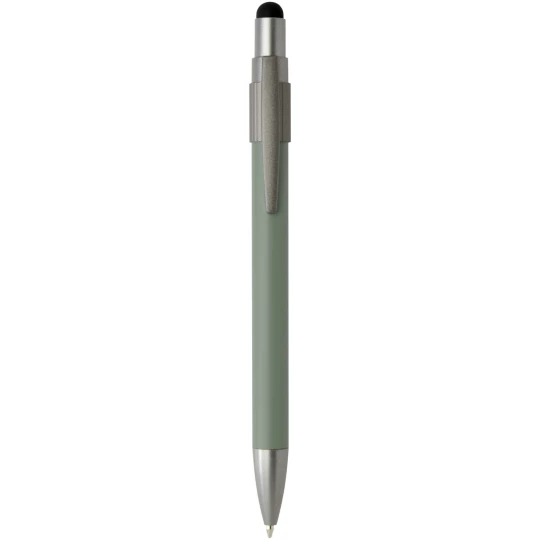 Długopis z rysikiem i fidget spinnerem, łączący praktyczność z zabawnym wyglądem. Długopis jest wykonany z certyfikowanego przez RCS aluminium pochodzącego z recyklingu i wyposażony w płynnie działający mechanizm przycisku oraz końcówkę rysika do obsługi ekranów dotykowych. Wbudowany w górną część długopisu fidget spinner pomaga w łagodzeniu stresu (wystarczy go poruszyć). Kolor tuszu długopisu: czarny Żywotność: 1000 metrów.