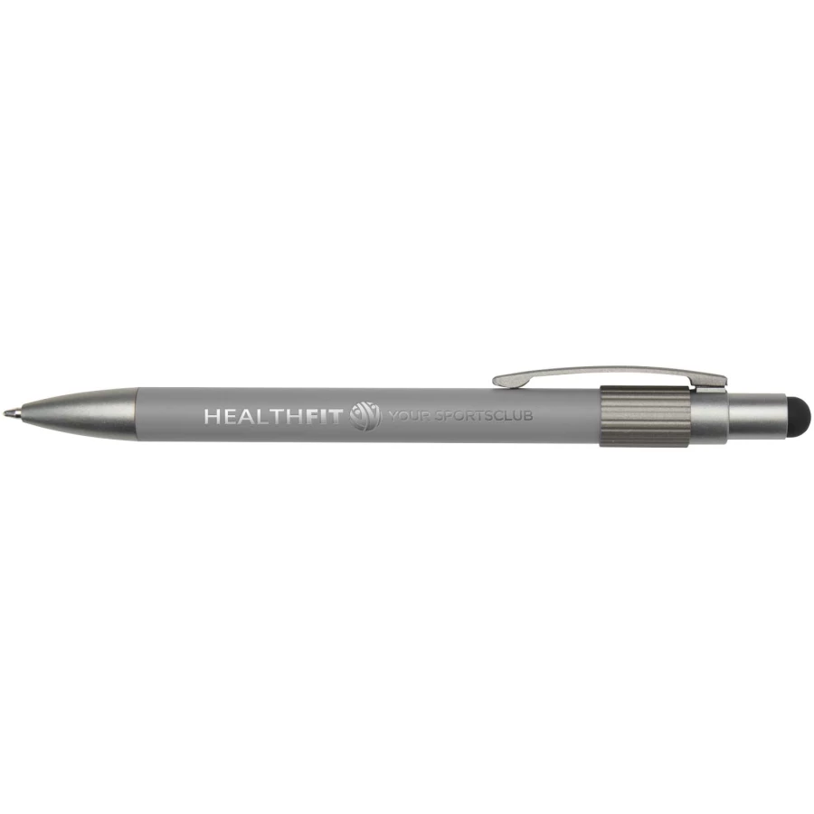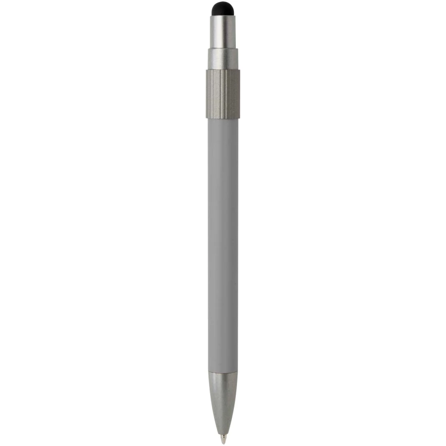 Długopis z rysikiem i fidget spinnerem, łączący praktyczność z zabawnym wyglądem. Długopis jest wykonany z certyfikowanego przez RCS aluminium pochodzącego z recyklingu i wyposażony w płynnie działający mechanizm przycisku oraz końcówkę rysika do obsługi ekranów dotykowych. Wbudowany w górną część długopisu fidget spinner pomaga w łagodzeniu stresu (wystarczy go poruszyć). Kolor tuszu długopisu: czarny Żywotność: 1000 metrów.