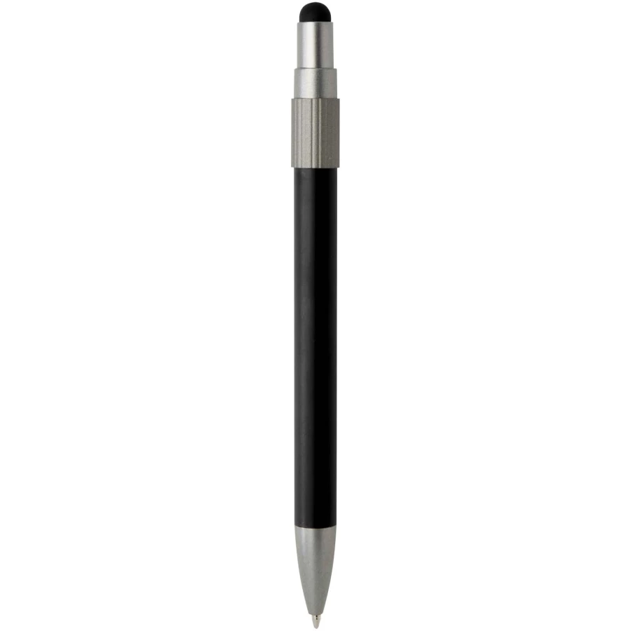 Długopis z rysikiem i fidget spinnerem, łączący praktyczność z zabawnym wyglądem. Długopis jest wykonany z certyfikowanego przez RCS aluminium pochodzącego z recyklingu i wyposażony w płynnie działający mechanizm przycisku oraz końcówkę rysika do obsługi ekranów dotykowych. Wbudowany w górną część długopisu fidget spinner pomaga w łagodzeniu stresu (wystarczy go poruszyć). Kolor tuszu długopisu: czarny Żywotność: 1000 metrów.