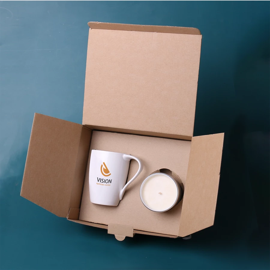 Oryginalny porcelanowy kubek Vision w towarzystwie wypełnionej w pełni biodegradowalnym woskiem sojowym, posiadającej szerokie możliwości brandingu świecy Romantic. Zestaw pakowany w dedykowane ekologiczne opakowanie. Całość opatrzona elegancką personalizowaną obwolutą.