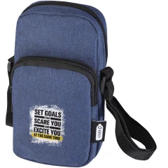 Etui na telefon z certyfikatem Ross GRS z recyklingu zapewnia bezpieczeństwo telefonu i zapewnia wygodne dodatkowe miejsce do przechowywania dzięki zapinanej na zamek przedniej kieszeni na małe akcesoria. Dzięki regulowanym paskom (do 140 cm) jest praktycznym i stylowym towarzyszem podróży w dzisiejszym cyfrowym świecie.