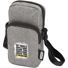 Etui na telefon z certyfikatem Ross GRS z recyklingu zapewnia bezpieczeństwo telefonu i zapewnia wygodne dodatkowe miejsce do przechowywania dzięki zapinanej na zamek przedniej kieszeni na małe akcesoria. Dzięki regulowanym paskom (do 140 cm) jest praktycznym i stylowym towarzyszem podróży w dzisiejszym cyfrowym świecie.