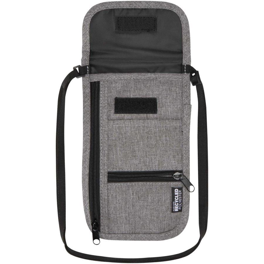 Ross inteligentna torba podróżna wykonana z materiałów pochodzących z recyklingu, posiadających certyfikat GRS, i zaprojektowana tak, aby zapewnić bezpieczeństwo i łatwy dostęp do najważniejszych rzeczy w podróży. Kompaktowa i praktyczna, posiada wiele kieszeni na telefon, powerbank, paszport, karty, monety, kable i wiele innych. Regulowany pasek o długości do 130 cm zapewnia wygodę noszenia, dzięki czemu jest to idealny dodatek podróżny dla współczesnych odkrywców.