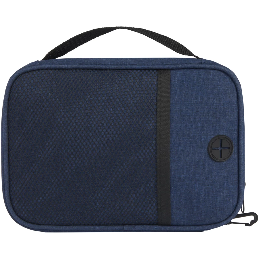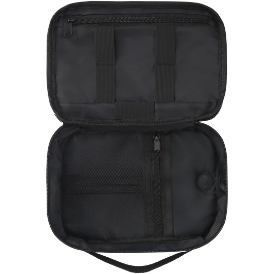 Organizer Ross z recyklingu, posiadający certyfikat GRS idealnie nadaje się dla osób będących w ciągłym ruchu i utrzymuje w porządku powerbanki, kable ładujące lub inne akcesoria elektroniczne. Posiada wiele kieszeni, elastyczne szlufki i przelotkę na przewód umożliwiającą przechowywanie powerbanku wewnątrz etui podczas ładowania telefonu. Posiada również plastikowy karabińczyk do mocowania do innej torby. Pojemność: 1 litrów.