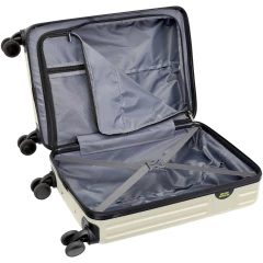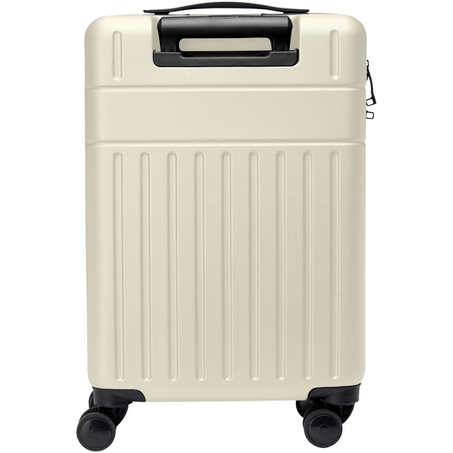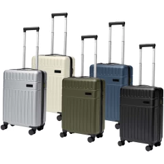 Twarda walizka na kółkach Rover o wysokości 51 cm, wyprodukowana z odpornych na uderzenia tworzyw sztucznych pochodzących z recyklingu i wyściółki RPET to produkt zarówno wysokiej jakości, jak i przyjazny dla środowiska. Posiada aluminiową ramę z podwójnymi rurkami, 4-kołowy mechanizm obrotowy 360 stopni, zintegrowany zamek szyfrowy TSA, wygodny uchwyt zapewniający komfort i wewnętrzne przegródki organizacyjne. Może być przewożona jako bagaż podręczny w większości głównych linii lotniczych. Walizka posiada certyfikat GRS, łącznie z nadrukiem, co sprawia, że jest wyborem bardziej przyjaznym dla środowiska.