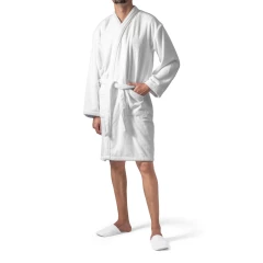 Szlafrok wykonany z bawełny (82%) i bawełny z recyklingu (18%) (350 g/m²). Posiada miękką w dotyku tkaninę, 1 pasek regulacyjny i 2 kieszenie (po 1 z każdej strony). Wyprodukowana w Europie. Rozmiary: S / M| 620 X 1150 mm
