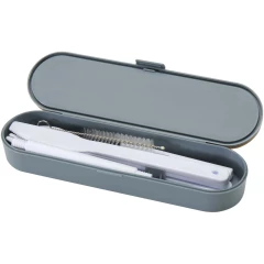 Zestaw sztućców wielokrotnego użytku z bambusową pokrywką, zawierający: widelec, nóż, łyżkę, słomkę i szczoteczkę do słomki – idealny do posiłków w podróży. Kompaktowy i łatwy do czyszczenia, doskonale nadaje się do pudełek na lunch, w podróży lub do użytku w biurze.