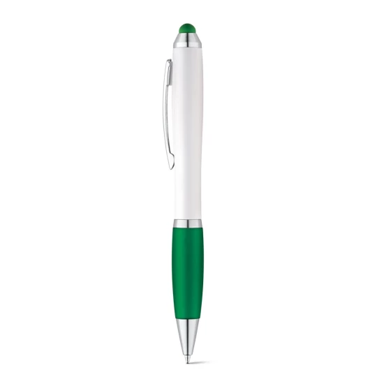 Długopis wykonany z ABS z metalowym klipem i mechanizmem obrotowym. Nadaje się do użytku na urządzeniach mobilnych dzięki końcówce dotykowej, zapewnia wygodne pisanie dzięki antypoślizgowemu uchwytowi. Dostępny w szerokiej gamie kolorów. Tusz niebieski. ø11 x 135 mm