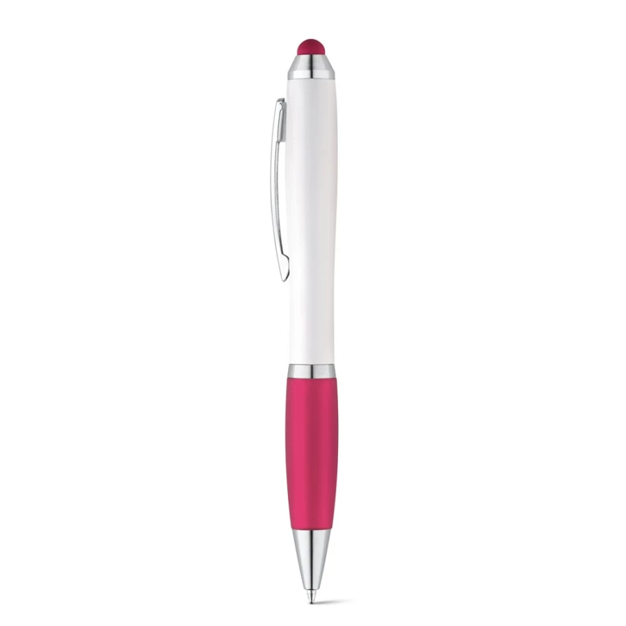 Długopis wykonany z ABS z metalowym klipem i mechanizmem obrotowym. Nadaje się do użytku na urządzeniach mobilnych dzięki końcówce dotykowej, zapewnia wygodne pisanie dzięki antypoślizgowemu uchwytowi. Dostępny w szerokiej gamie kolorów. Tusz niebieski. ø11 x 135 mm