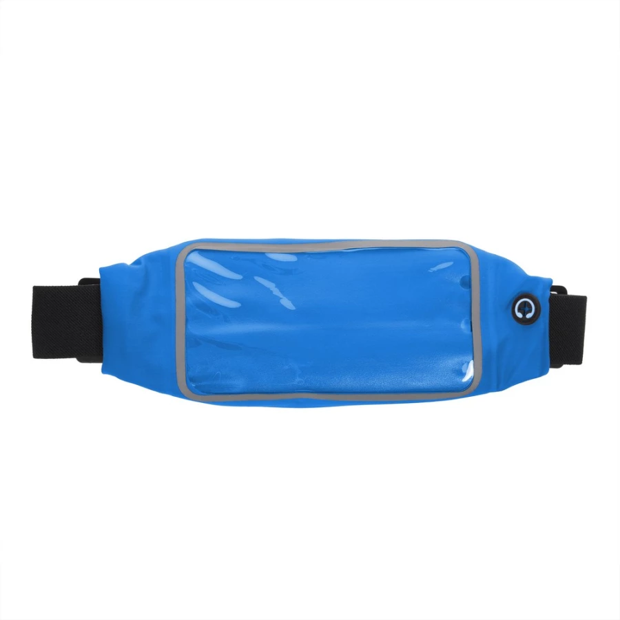 Saszetka zapinana w pasie, posiada kieszeń z okienkiem umożliwiającą obsługę ekranów dotykowych oraz otwór na kabel od słuchawek lub power banku (nie są dołączone), regulowany elastyczny pasek umożliwiający dopasowanie obwodu: min. obwód ok. 59 cm, max. obwód ok. 82 cm (plus rozciągnięcie), produkt wykonany z elastanu