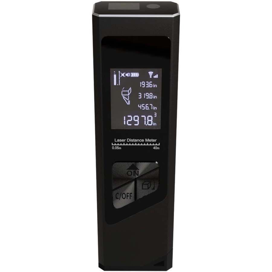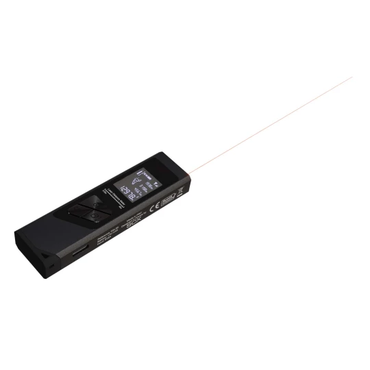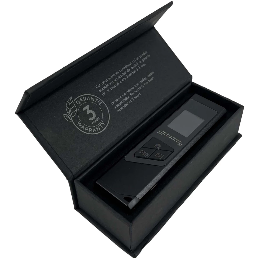 Mini telemetr laserowy jest łatwiejszym, szybszym i dokładniejszym sposobem pomiaru powierzchni, objętości i posiada także funkcję Pitagorasa. Dzięki precyzyjnej technologii laserowej i trybowi pomiaru w czasie rzeczywistym zapewnia niezawodne pomiary do 40 metrów. Telemetr wykorzystuje energooszczędny akumulator litowo-jonowy o pojemności 200 mAh jako źródło zasilania i może mierzyć odległość 2000 razy po pełnym naładowaniu. Jest wyposażony w podświetlany wyświetlacz ułatwiający podgląd pomiaru nawet w ciemnych miejscach. Wymiary: 9 x 2.4 x 1.1 cm. Zapakowany w pudełko upominkowe z papieru z recyklingu (10,2 x 4,2 x 3 cm) z magnetycznym zamknięciem. 3-letnia gwarancja.