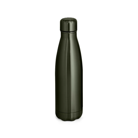 Dwuścienna butelka ze stali nierdzewnej z izolacją próżniową. Butelka z metalizowanym wykończeniem i zakrętką ze stali nierdzewnej. Pojemność do 510 ml. Dostarczana w pudełku prezentowym z papieru pakowego. ø70 x 255 mm | Pudełko: 72 x 72 x 275 mm