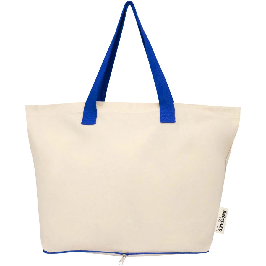 Lekka i praktyczna, składana torba na zakupy Sierra jest wykonana w 100% z certyfikowanej przez GRS bawełny z recyklingu o gramaturze 140 g/m² i zapewnia równowagę między uniwersalnością a trwałością. Można ją starannie złożyć do dołączonej kieszonki zapinanej na zamek błyskawiczny znajdującej się na dole, dzięki czemu jest kompaktowa i łatwa do przenoszenia. Torba o pojemności 10 kg doskonale nadaje się na zakupy, do załatwiania spraw lub w podróży i jest wyposażona w podwójne uchwyty, które zapewniają dodatkowe wsparcie i wygodę podczas przenoszenia cięższych ładunków. Pojemność: 7 litrów.