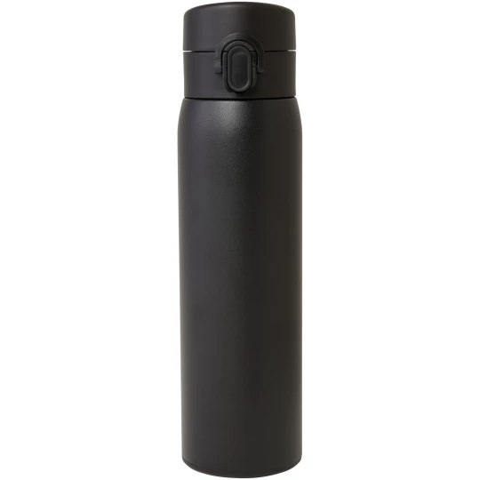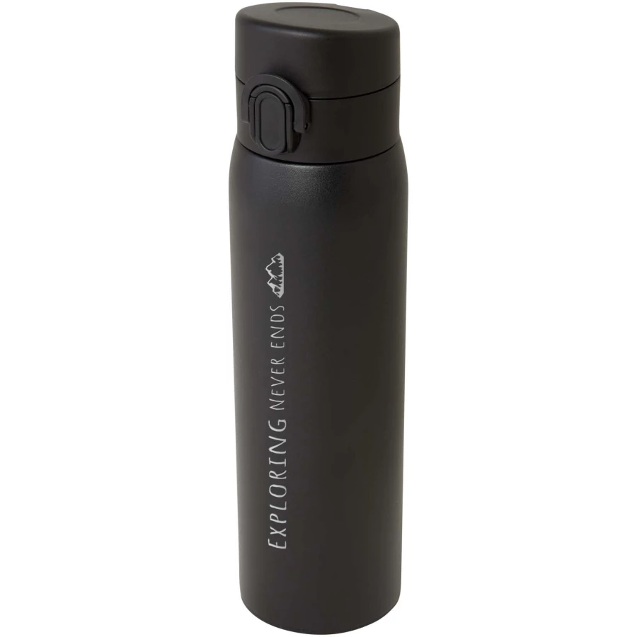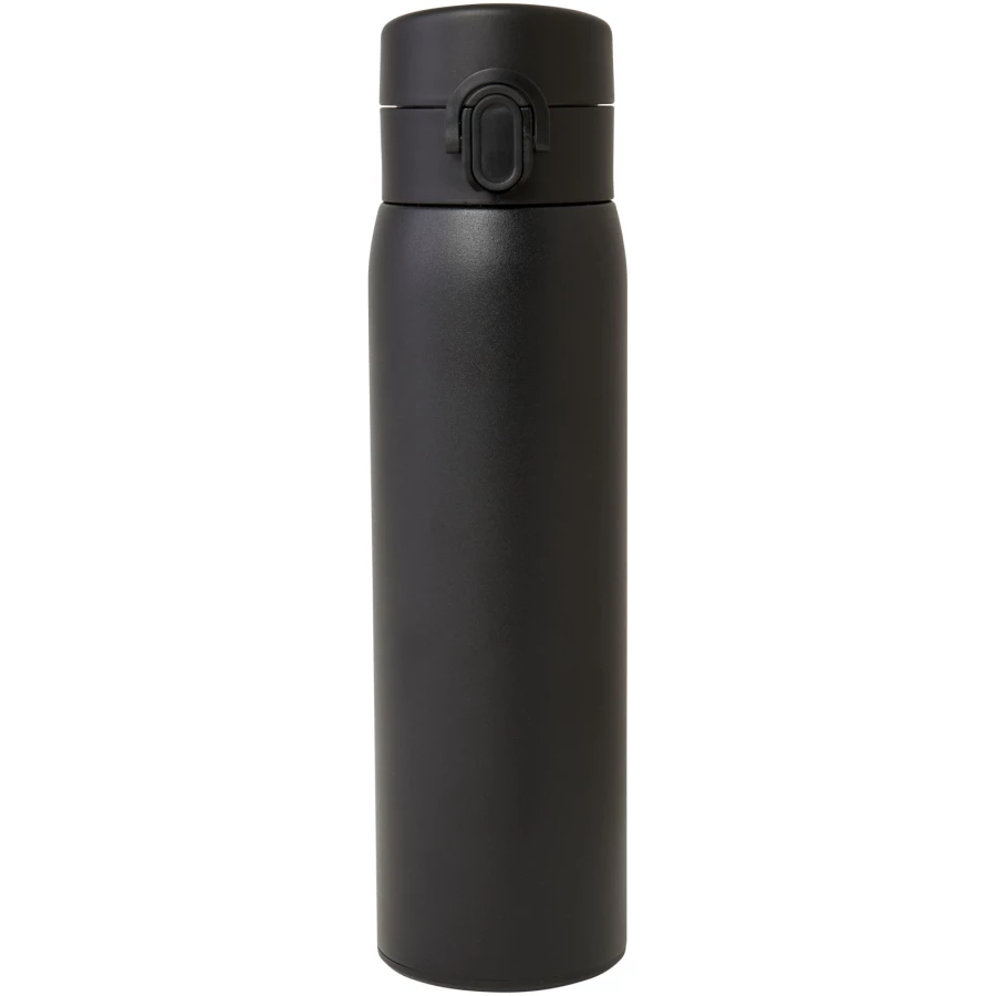 Stylowy, izolowany termos ze stali nierdzewnej pochodzącej z recyklingu z certyfikatem RCS i łatwym mechanizmem otwierania. Termos jest szczelny, a dzięki miedzianej izolacji próżniowej napoje utrzymują niską lub wysoką temperaturę przez kilka godzin. Pojemność 450 ml. Zapakowana w pudełko upominkowe wykonane z kartonu z recyklingu.