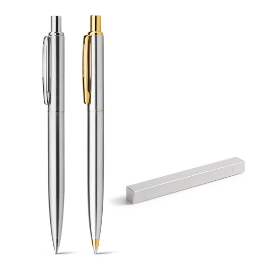 Długopis ze stali nierdzewnej z błyszczącym korpusem i klipem. Niebieski tusz. Dostarczany w zdemontowanym pudełku upominkowym. ø11 x 140 mm | Pudełko: 182 x 22 x 42 mm