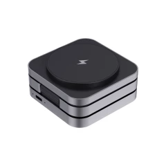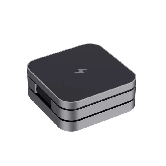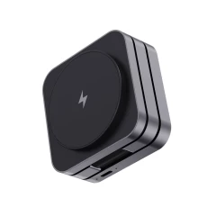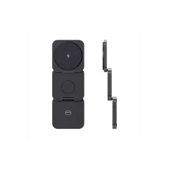 Ładowarka bezprzewodowa 3 w 1, składana, magnetyczna ładowarka bezprzewodowa 15W, ładowarka bezprzewodowa 5W do słuchawek i drobnych akcesoriów, ładowarka bezprzewodowa 2,5W do smartwatchy (tylko iOS), wykonana z PU z recyklingu, działa z telefonami posiadającymi możliwość ładowania indukcyjnego, wejście 9V/3A, wyjście dla telefonu 9 V/1.1 A, 9 V/1.67 A, 15 W, wyjście dla słuchawek 5V/1A, 5W, wyjście smartwatcha 5V/0.5A, kabel 120 cm z TPE z recyklingu w komplecie
