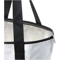 Ta zaprojektowana z myślą o wygodzie i praktyczności, lekka, a zarazem wytrzymała, termiczna torba na zakupy dopasowuje się do Twoich potrzeb. Możesz złożyć ją i umieścić w kompaktowym woreczku z pętlą do zawieszenia, która pozwala wygodnie odwiesić torbę lub nosić ją przy sobie. Dzięki temu torba idealnie nadaje się na pikniki, zakupy i przygody w plenerze. Posiada główną komorę zapinaną na suwak, wyściełaną folią aluminiową, przednią otwartą kieszeń i dwa długie uchwyty wykonane z wysokiej jakości gładkiej taśmy. Wykonany z poliestru pochodzącego z recyklingu, wolnego od PVC. Pojemność: 15 litrów.