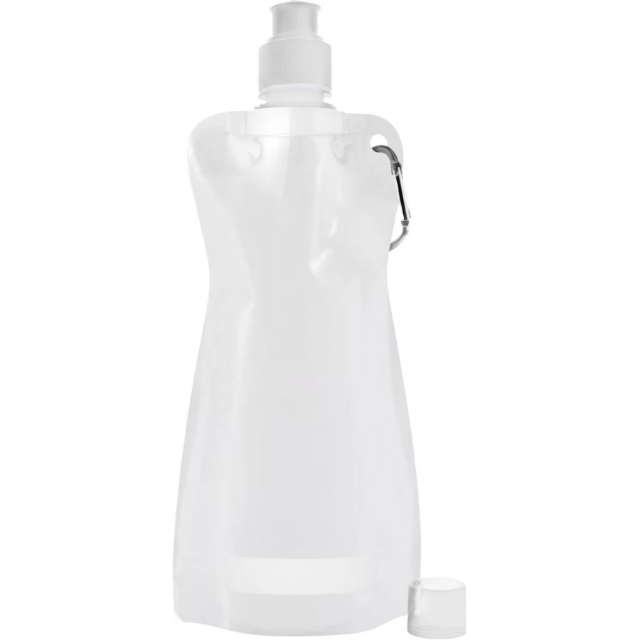 Składany bidon 420 ml z karabińczykiem umożliwiającym przypinanie, przezroczysty (z wyjątkiem -02 oraz -32) dziubek ułatwiający picie, po złożeniu może zmieścić się nawet w kieszeni
