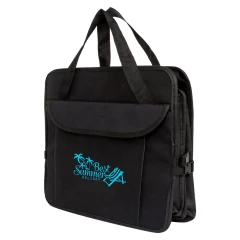 Składany organizer samochodowy z 2 dużymi przegrodami, przegrodą termoizolacyjną zamykaną na zamek błyskawiczny, 2 bocznymi kieszeniami na rzep oraz 2 rzepami na spodzie